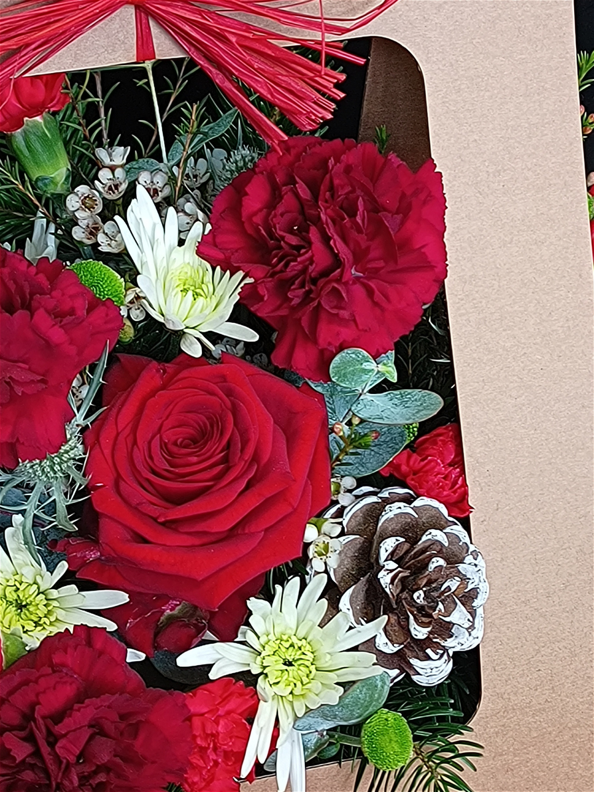 This festive edition of our best - selling Living Floral Card design is filled with mix of Christmas palette of rich reds and whites blooms and seasonal foliage. Beautiful hassle-free arrangement for any occasion this season!
