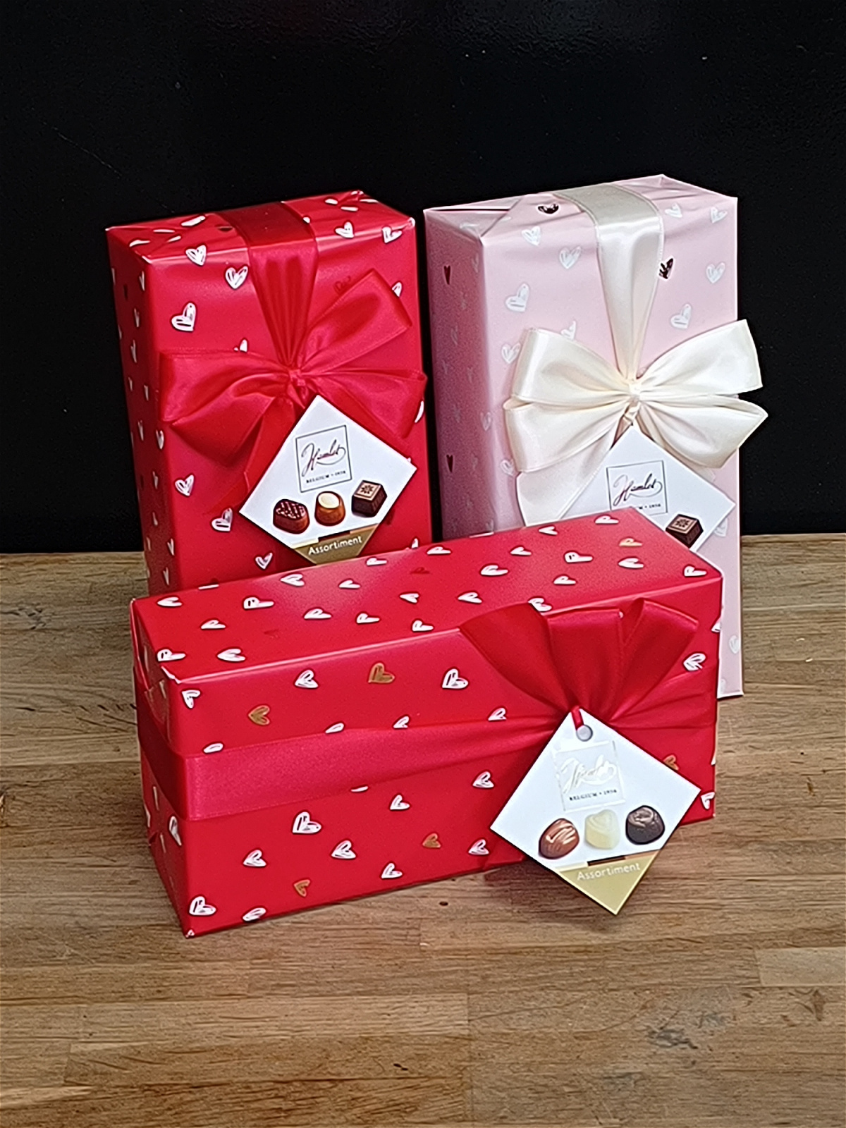 A mixture of Belgian Chocolates presented in a romantic ballotin and finished with satin ribbon.